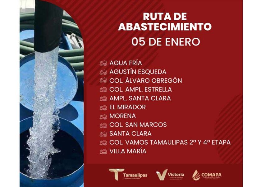 Te compartimos la ruta de abastecimiento a través de camión cisterna. 💧 ¡Juntos hacemos que el agua llegue a todos! Comparte esta información con tus vecinos.