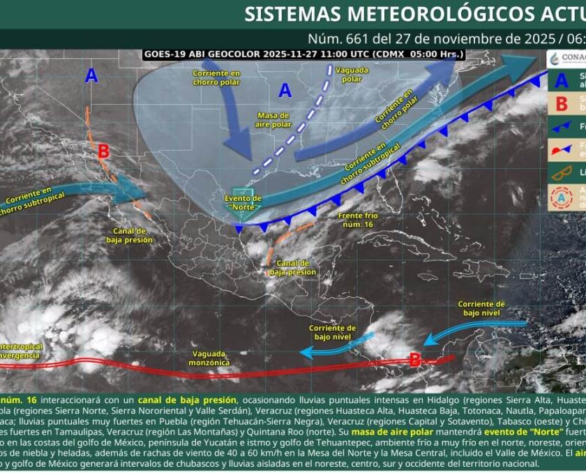 Por Julio Manuel Loya Guzmán.Cd. Victoria, Tamaulipas.– Ante las condiciones climatológicas que prevalecen en la región noreste del país, el Servicio Meteorológico Nacional (SMN) confirmó que Tamaulipas se mantiene bajo vigilancia debido a la probabilidad de lluvias puntuales fuertes, rachas de viento y oleaje elevado que podrían afectar zonas urbanas y rurales durante las próximas 24 horas. De acuerdo con…