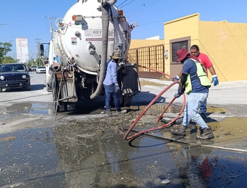 Reynosa, Tam.- Por instrucciones del Presidente Municipal, Carlos Peña Ortiz, la Comisión Municipal de Agua Potable y Alcantarillado de Reynosa realizó el sondeo de línea general de drenaje sanitario sobre la calle Miramar con Circuito Río Carrizal, en la colonia Villas Diamante, donde se extrajeron grandes cantidades de grasa y desechos que obstruían el flujo en la red, afectando su…
