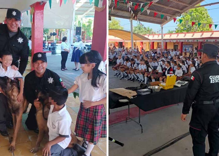 Ciudad Victoria, Tamaulipas.- El Agrupamiento Canino de la Guardia Estatal participó en la Academia Social de Valores y Jornada Cívica organizada en la Escuela Primaria Juana de Asbaje y Ramírez, en el centro de Ciudad Victoria, donde los binomios Brea y Lucky se convirtieron en el principal atractivo para alumnas, alumnos y docentes. La actividad tuvo como propósito acercar a…