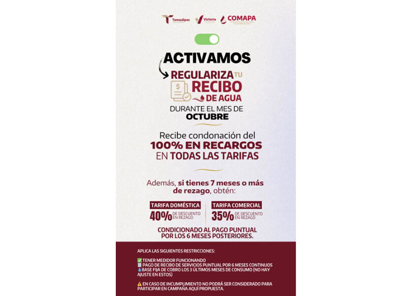 🧾📣 Activa COMAPA Victoria la campaña “REGULARIZA TU RECIBO”