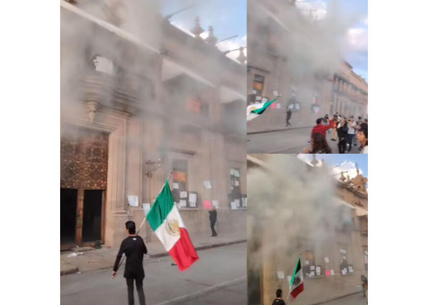 INCENDIAN PALACIO DE GOBIERNO EN MORELIA DURANTE PROTESTA POR EL ASESINATO DEL ALCALDE CARLOS MANZO