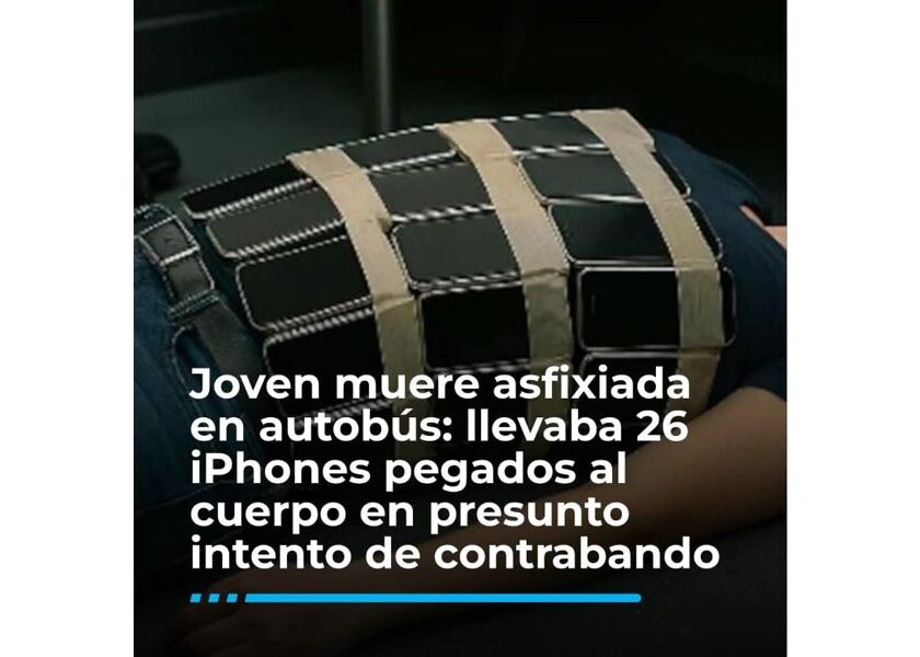 Joven muere asfixiada en autobús: llevaba 26 iPhones pegados al cuerpo en presunto intento de contrabando
