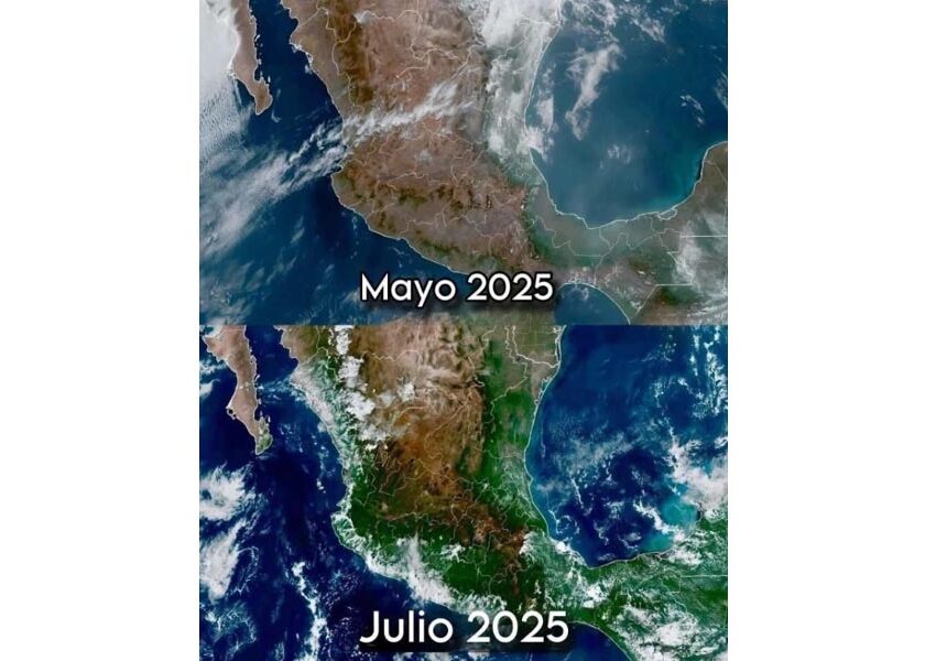 Las imágenes satelitales no mienten: el país se ha pintado de verde 🌿 Después de atravesar el mes más lluvioso en años, vastas regiones de México muestran una transformación sorprendente. Lo que antes era árido, hoy florece. 🌱 Las lluvias de junio han dejado su huella: campos, sierras y zonas semiáridas recuperan vida. Así se ve el contraste desde el…