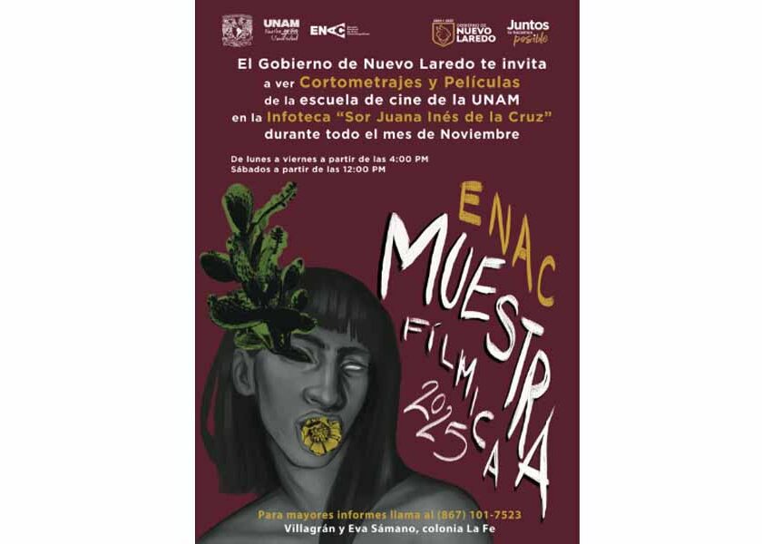 Nuevo Laredo, Tam.- La Infoteca “Sor Juana Inés de la Cruz” de Nuevo Laredo, Tamaulipas, fue seleccionada como sede nacional para la proyección de cortometrajes y películas de la Muestra Fílmica 2025 de la Escuela Nacional de Artes Cinematográficas (ENAC). “Esta actividad presenta anualmente la creatividad y el talento emergente de los estudiantes que egresan de esa carrera con la…