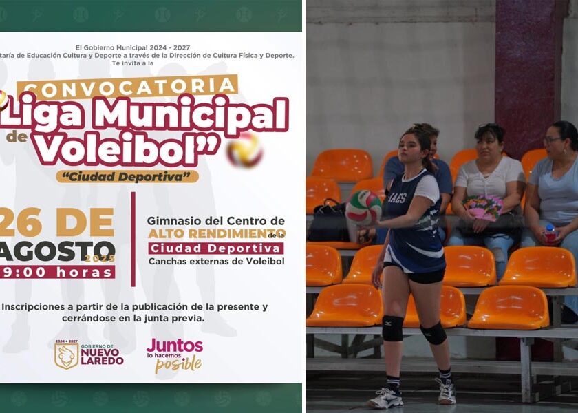 Nuevo Laredo, Tam.- El Gobierno Municipal 2024–2027, a través de la Secretaría de Educación, Cultura y Deporte y la Dirección de Cultura Física y Deporte, invita a la ciudadanía a participar en la Liga Municipal de Voleibol “Ciudad Deportiva”, que dará inicio el próximo 26 de agosto a las 7 de la tarde en el Gimnasio del Centro de Alto…