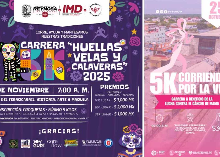 Reynosa, Tam.- El Alcalde Carlos Peña Ortiz, continúa impulsando actividades deportivas con sentido social, brindando su respaldo para la realización de dos carreras 5K con causa que fomentan la participación ciudadana, la solidaridad y la salud. La primera es la Carrera Corriendo por la Vida, organizada por el DIF Reynosa, en apoyo a la lucha contra el cáncer de mama,…