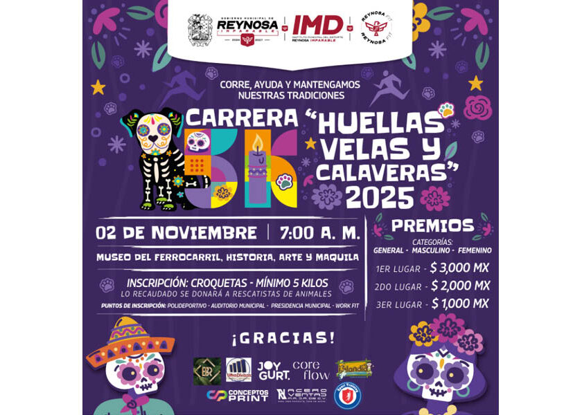 Invita el Gobierno de Reynosa a participar en la carrera 5K Huellas, Velas y Calaveras 2025
