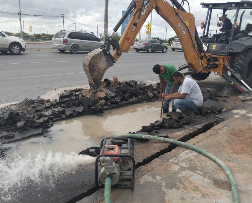 Reynosa, Tam.- Por instrucciones del Alcalde, Carlos Peña Ortiz, la COMAPA Reynosa realiza trabajos para reparar fugas de agua potable en distintos puntos de la ciudad, con el objetivo de evitar el desperdicio del vital líquido y garantizar un servicio continuo y eficiente para todas las familias reynosenses. El personal operativo se encuentra trabajando sobre la carretera a Monterrey, frente…