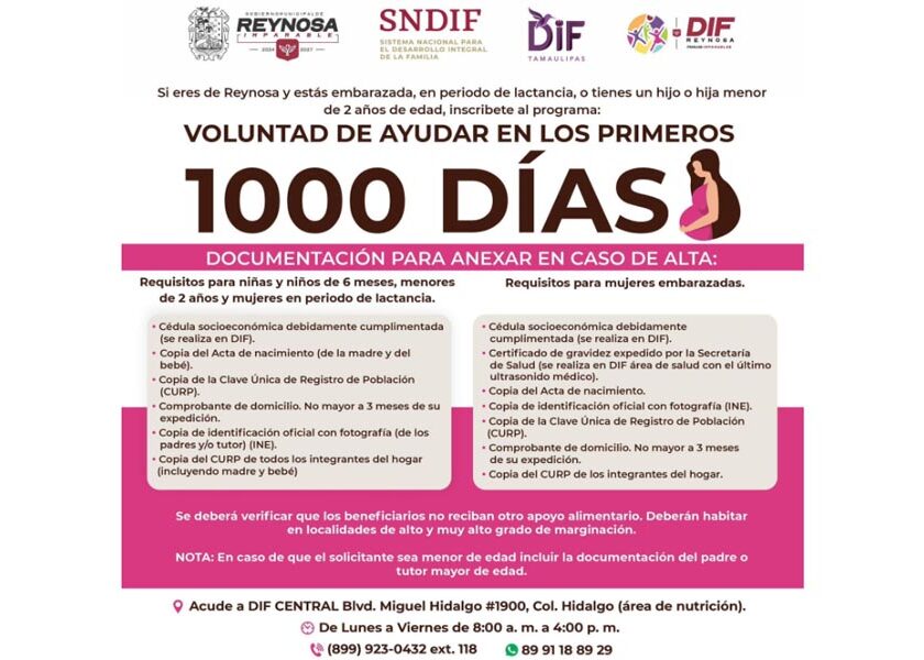 Invita DIF-Reynosa a registrarse al programa “Voluntad de Ayudar en los Primeros 1000 Días”