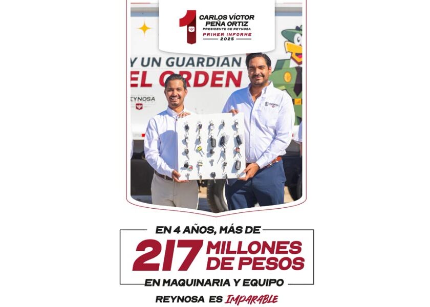 Reynosa, Tam.- En cuatro años, El Gobierno del Alcalde Carlos Peña Ortiz ha invertido más de 217 Millones de Pesos en maquinaria y equipo; el Municipio cuenta hoy con herramienta de gran importancia para transformar la ciudad. Limpieza de vialidades, reparación del alumbrado público, bacheo, rehabilitación de plazas públicas y áreas verdes, así como de espacios deportivos, entre otros, son…