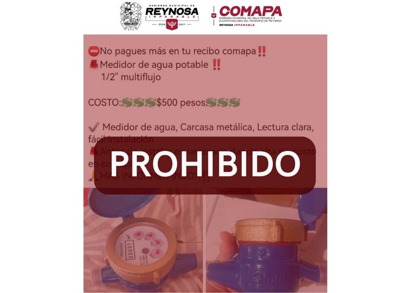 Reynosa, Tam.- La Comisión Municipal de Agua Potable y Alcantarillado de Reynosa informa a la ciudadanía sobre publicaciones en redes sociales en las que se ofertan medidores de agua que no corresponden a los equipos oficiales del organismo. Se hace un llamado a la población a no comprar ni instalar estos dispositivos, ya que únicamente los medidores distribuidos e instalados…