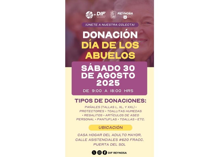 Este sábado invita DIF-Reynosa a participar en Colecta del Día del Abuelo