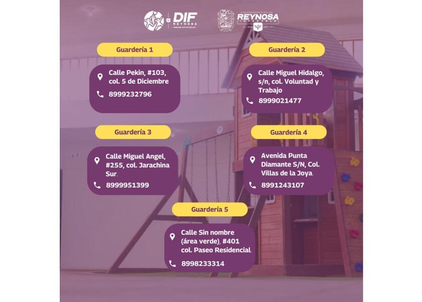 Reynosa, Tam.- El Sistema DIF Reynosa que preside Carlos Luis Peña Garza, informa a las familias que se encuentran abiertas las preinscripciones en las 5 guarderías con las que cuenta el organismo, espacios diseñados para ofrecer cuidado, atención y actividades educativas que contribuyen al desarrollo integral de las niñas y los niños. El Gobierno de Reynosa a través del DIF…