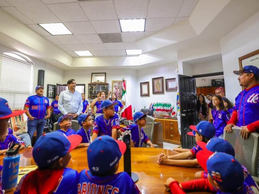 Reynosa, Tam.- En Reynosa, el Alcalde Carlos Peña Ortiz brinda el apoyo incondicional de su Gobierno, para que niños y jóvenes, hombres y mujeres sigan trayendo triunfos de todos los deportes en cualquier lado del mundo y hoy recibió a jugadores de la Liga Pequeña de Beisbol Treviño Kelly, campeones nacionales de la Serie Williamsport categoría Moyote. “Estamos muy orgullosos…