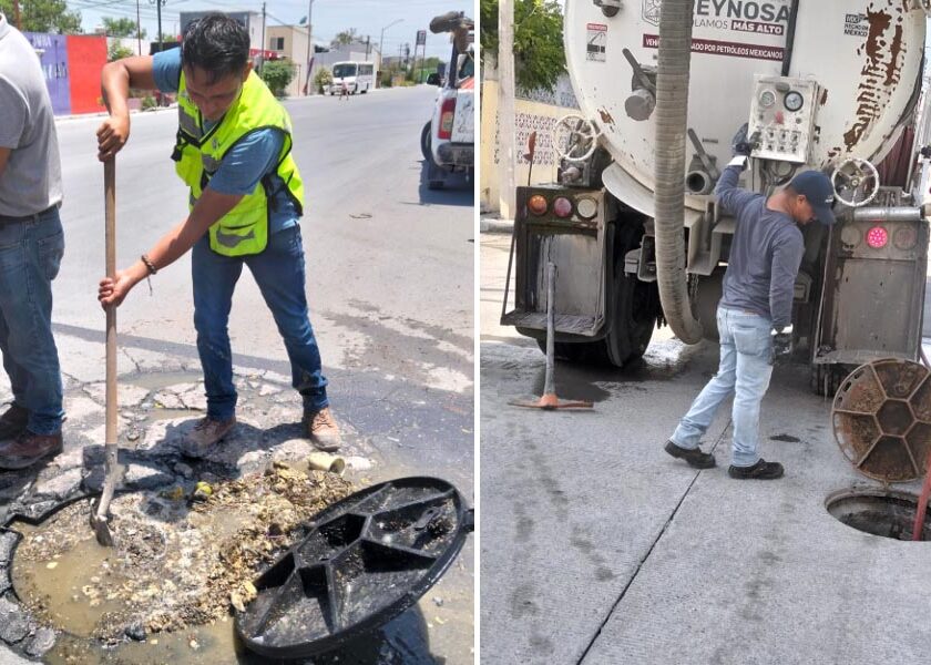 Reynosa, Tam.- Por instrucciones del Alcalde, Carlos Peña Ortiz, y como parte de las acciones permanentes para mejorar el funcionamiento del sistema de drenaje, la Comisión Municipal de Agua Potable y Alcantarillado de Reynosa llevó a cabo labores de sondeo en la línea general de drenaje sanitario sobre calle Santa Isabel, entre 8 y 10, en el fraccionamiento Hacienda Las…