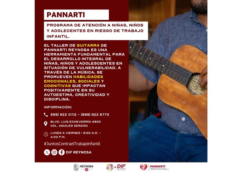 Reynosa, Tam.- Con el firme compromiso de brindar atención integral, el Sistema DIF-Reynosa que preside Carlos Luis Peña Garza, fortalece las actividades del Programa de Atención a Niñas, Niños y Adolescentes en Riesgo y Trabajo Infantil, a través de herramientas educativas y artísticas como el taller de guitarra. Este taller, busca fomentar el desarrollo emocional, social y cognitivo de los…