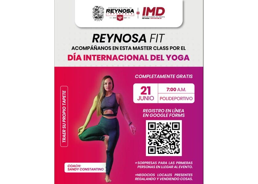 Reynosa, Tam.- El Alcalde Carlos Peña Ortiz invita a la ciudadanía a participar en la Master Class Reynosa Fit, con motivo de la conmemoración del Día Internacional del Yoga, en un evento completamente gratuito que se llevará a cabo en las instalaciones del Polideportivo Reynosa. La actividad está organizada por el Instituto Municipal del Deporte, el cual tiene a su…