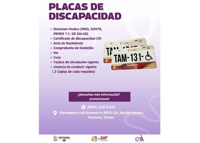 Reynosa, Tam.- El Sistema DIF-Reynosa que preside Carlos Luis Peña Garza, informa a la ciudadanía que las personas con discapacidad neuromotora severa y permanente pueden tramitar placas de discapacidad, un beneficio que contribuye a facilitar su movilidad y el acceso a espacios de estacionamiento destinados para este sector de la población. Este apoyo está dirigido a quienes dependen de manera…
