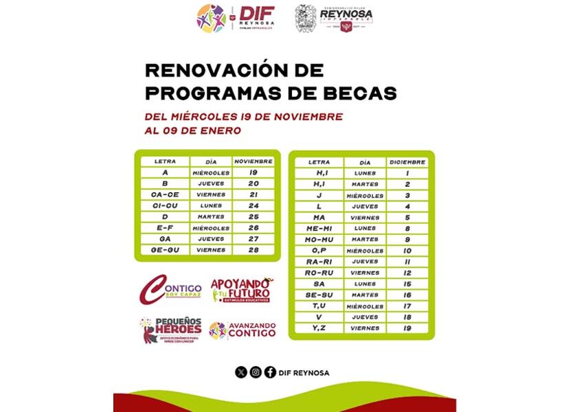 Llama DIF-Reynosa a realizar renovación de becas