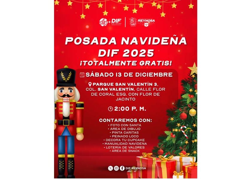 Reynosa, Tam.- Por instrucciones del Alcalde Carlos Peña Ortiz, el Sistema DIF-Reynosa que preside Carlos Luis Peña Garza, llevará la magia decembrina a las familias de la colonia San Valentín con la Posada Navideña DIF 2025, un evento que busca fortalecer la convivencia y compartir momentos de alegría en estas fechas especiales. La celebración se realizará en el Parque San…