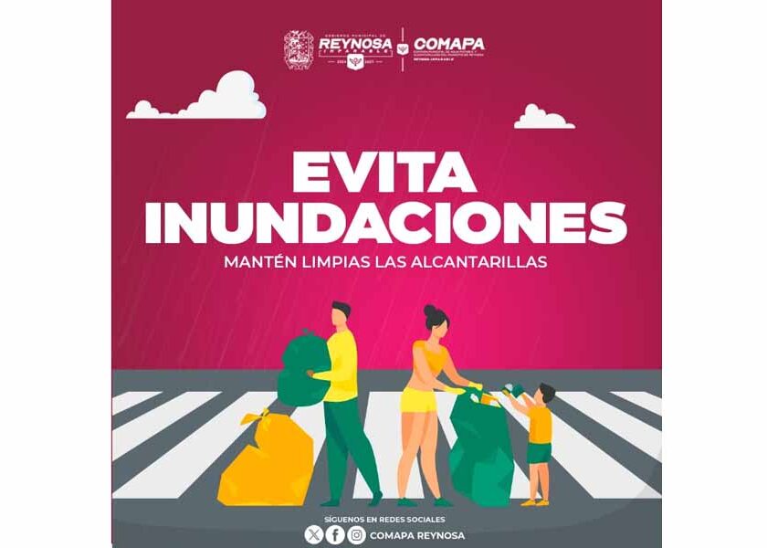 Reynosa, Tam.- La Comisión Municipal de Agua Potable y Alcantarillado de Reynosa hace un llamado a la ciudadanía a sumarse a las prácticas de limpieza y cuidado de la infraestructura para proteger sus hogares y la movilidad de todos, manteniendo limpias las alcantarillas y así prevenir inundaciones. Con la finalidad de evitar obstrucciones en la red pluvial, se exhorta a…