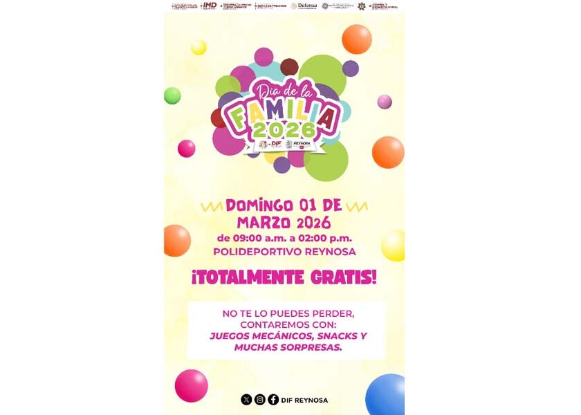Invita DIF-Reynosa a celebrar el Día de la Familia en el Polideportivo