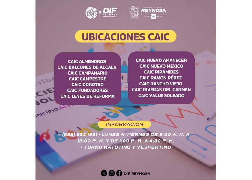 Reynosa, Tam.- El Sistema DIF-Reynosa que preside Carlos Luis Peña Garza, mantiene abiertas las preinscripciones en los 14 Centros de Asistencia Infantil Comunitarios, ubicados en distintos sectores de la ciudad, donde se brinda educación preescolar en espacios seguros y adecuados para el desarrollo integral de niñas y niños. Estos centros cuentan con turno matutino y vespertino, apoyo pedagógico y programa…