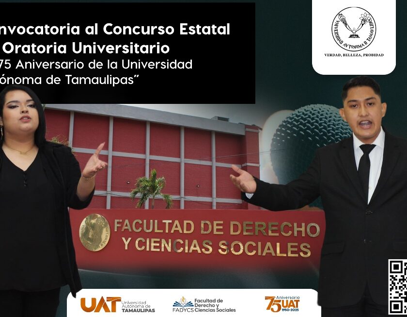 Tampico, Tam.- La Universidad Autónoma de Tamaulipas (UAT) organiza el Concurso Estatal de Oratoria Universitario, que se realizará el 13 de mayo de 2025, en la Facultad de Derecho y Ciencias Sociales del Campus Sur de esta casa de estudios. El evento está dirigido a estudiantes de todos los planteles de la UAT, con el propósito de generar un sentido…