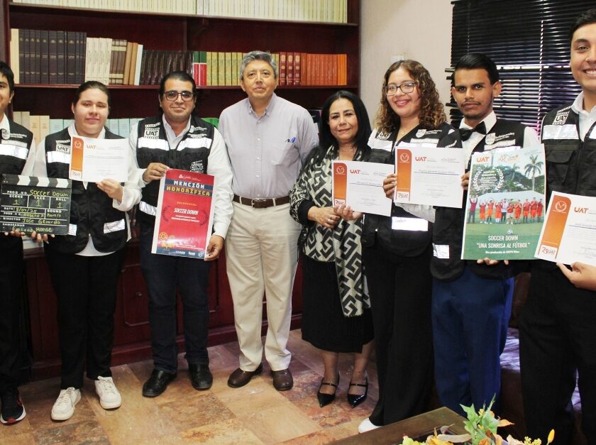 Tampico, Tam.- El estudiante de la Universidad Autónoma de Tamaulipas (UAT), José Gerardo Hernández Morales, obtuvo mención honorífica en el Festival Nacional de Cortometraje Universitario en Video “Cortocinema”, organizado por la Universidad La Salle Bajío, Guanajuato. José Gerardo recibió el reconocimiento por el documental “Soccer Down”, trabajo realizado con la asesoría del Laboratorio de Cine Digital Emoción-Arte, de la Licenciatura…