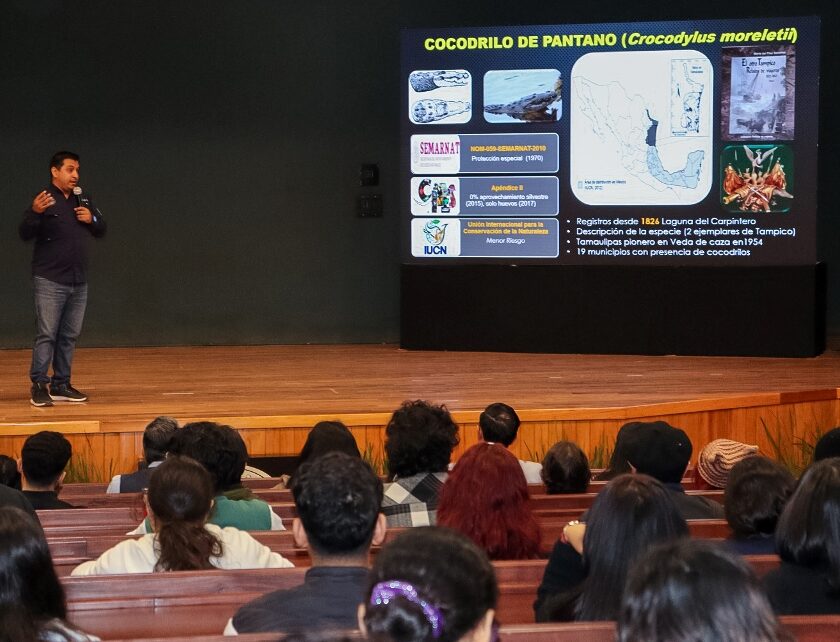 Tampico, Tam.- La Universidad Autónoma de Tamaulipas (UAT) llevó a cabo la conferencia “Problemática de las interacciones humano–cocodrilo en Tamaulipas: percepción del riesgo, conducta humana y comunicación social”, un espacio de reflexión académica que vinculó el conocimiento científico con los desafíos sociales y ambientales del entorno regional. La actividad fue organizada de manera coordinada por la Facultad de Derecho y…