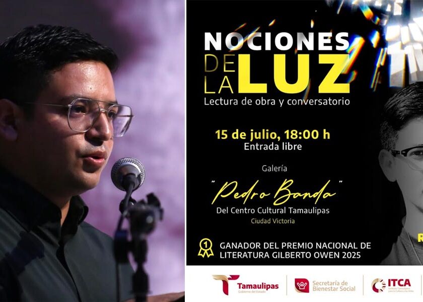 Ciudad Victoria, Tamaulipas.- El escritor tamaulipeco Roberto López quien resultó ganador del Premio Nacional de Literatura Gilberto Owen 2025, en la categoría de poesía, con su obra “Nociones de la luz”, se presentará mañana martes 15 de julio en un evento que tendrá lugar en la Galería Pedro Banda del Centro Cultural Tamaulipas, en la capital tamaulipeca. Así lo informó…