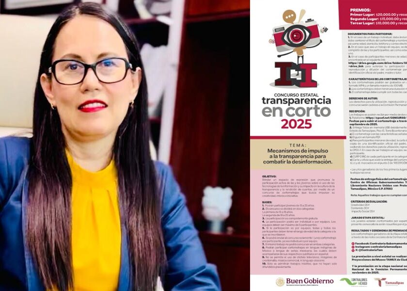 Ciudad Victoria, Tamaulipas.- La contralora gubernamental de Tamaulipas, Norma Angélica Pedraza Melo, anunció una bolsa de 90 mil pesos en premios para los ganadores del concurso estatal de cortometraje “Transparencia en Corto” en su segunda edición. Para este año la Comisión Permanente de Contralores Estados Federación designó como tema para el concurso “Mecanismos de impulso a la transparencia para combatir…