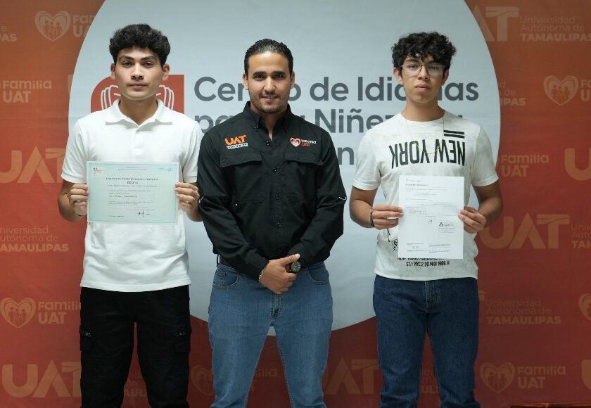 Ciudad Victoria, Tam.- La Universidad Autónoma de Tamaulipas (UAT), a través del Centro de Idiomas para la Niñez y la Adolescencia (CEINA), celebra con orgullo el destacado desempeño de dos de sus estudiantes, quienes obtuvieron la certificación oficial DELF A2 (Diploma de Estudios en Lengua Francesa) expedida por el Ministerio de Educación Nacional y de Juventud de Francia. Se trata…